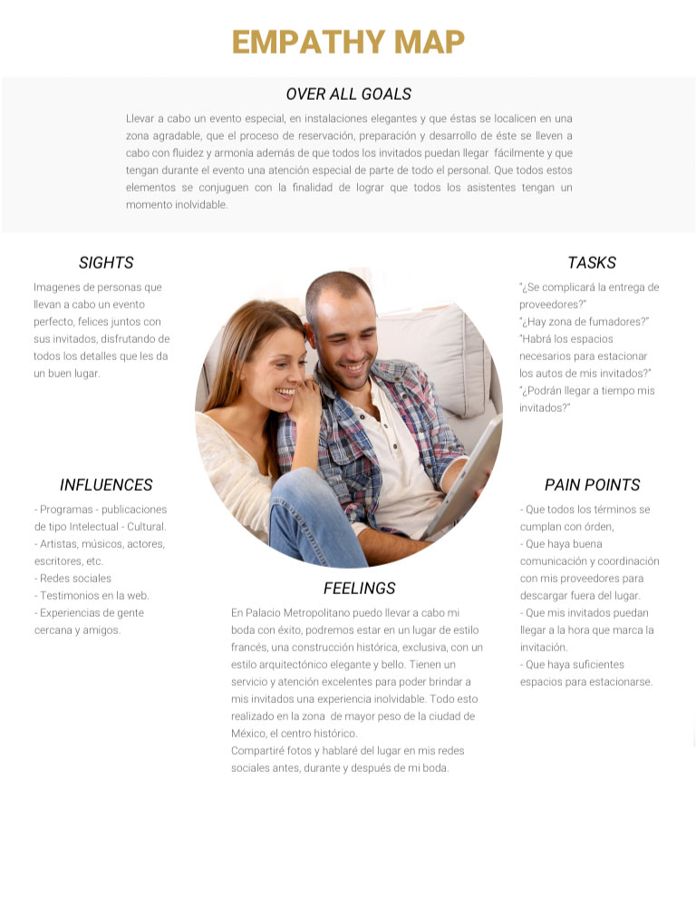 Partiendo de las respuestas de un test aplicado a clientes de PM y reviews recopilados de google y redes sociales, se pudo generar un perfíl que estableciera las necesidades y objetivos de sus usuarios, además de centrarse en captar a nuevos clientes potenciales.