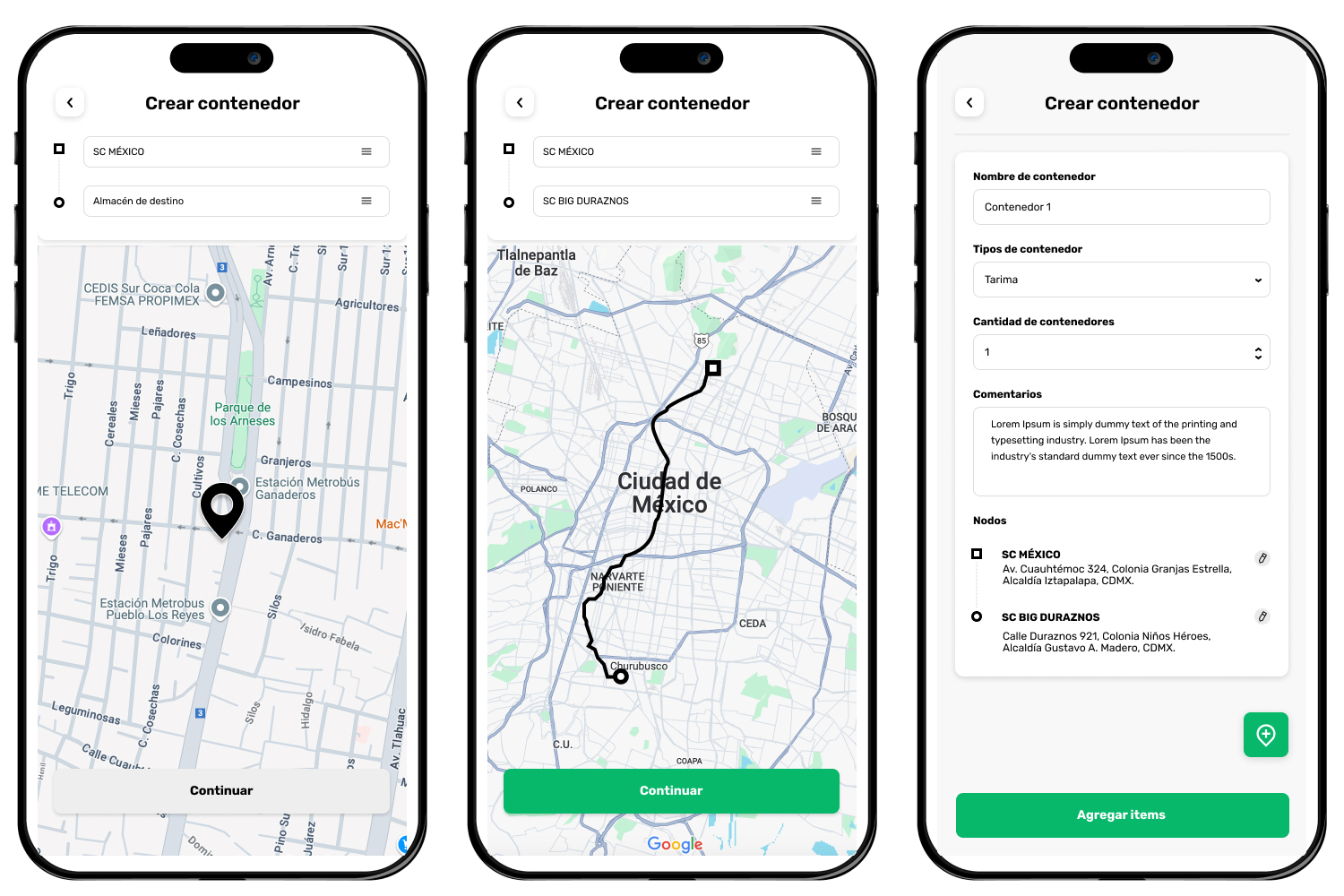Diseño de flujos para una primer etapa de la aplicación móvil que comprendía las secciones de Contenedores y Circuitos, además del flujo de ingreso. Sesiones con el usuario para investigación y retroalimentación. Planeación y desarrollo bajo metodología Agile Scrum en conjunto con PM y equipo de tecnología . Supervisión de los resultados finales.