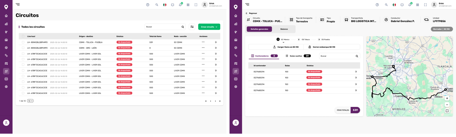 La empresa, desarrolladora de soluciones logísticas desde la CDMX, buscaba digitalizar la operación de su hub central en Naucalpan. El objetivo era optimizar procesos de transporte, reducir errores manuales, facilitar la trazabilidad y centralizar la información en una sola plataforma SaaS.