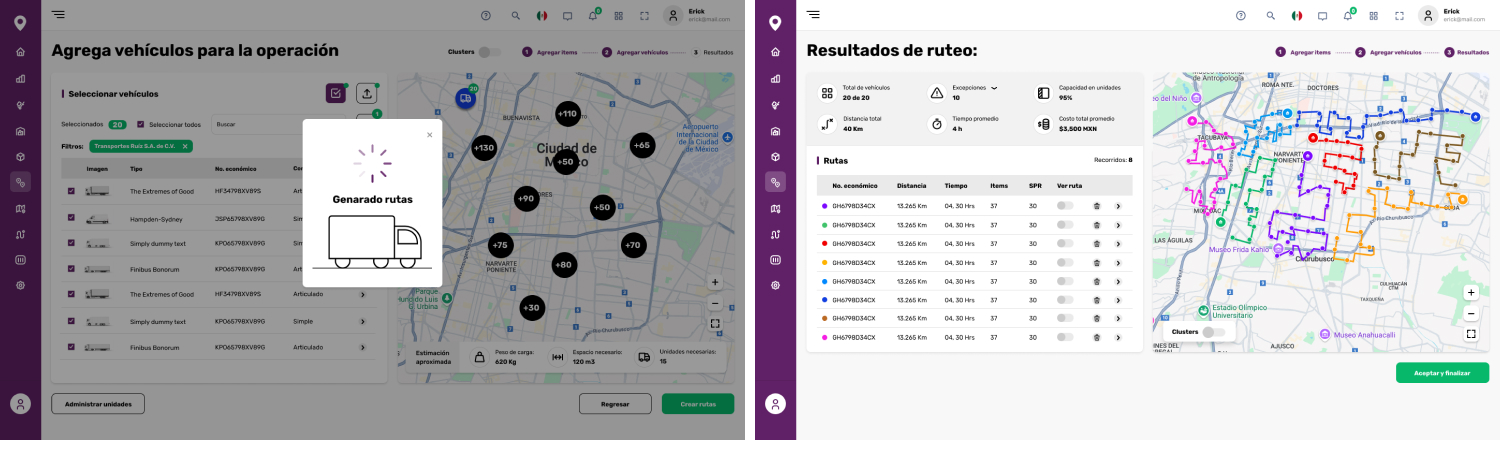 • Asigna las cargas y rutas a los vehículos adecuados según capacidad, tipo de mercancía, disponibilidad y ubicación.