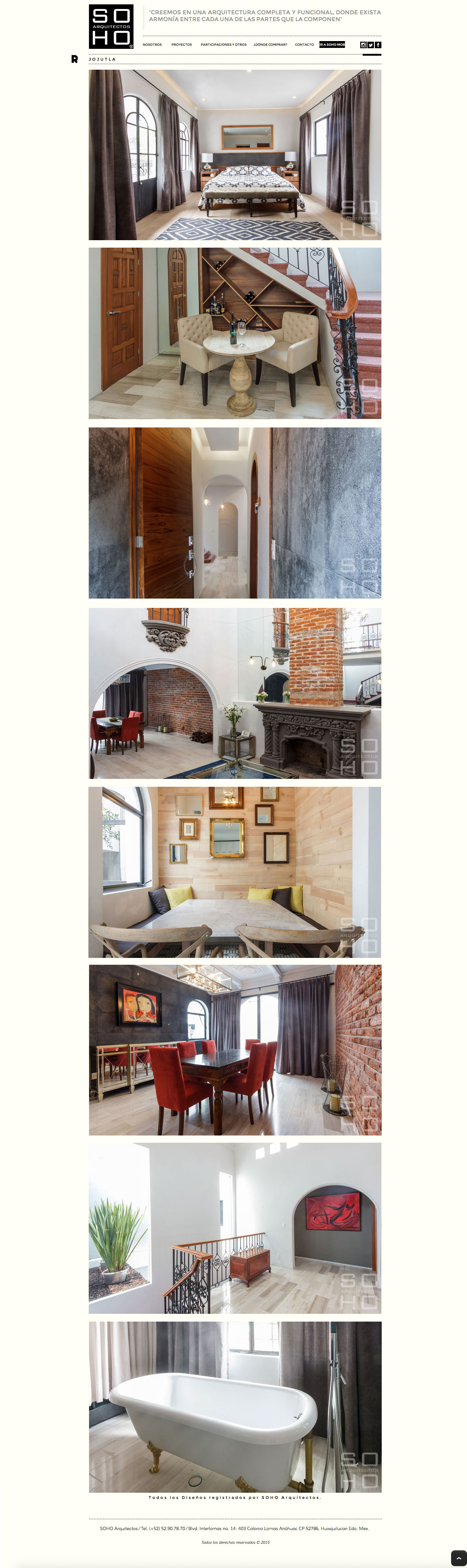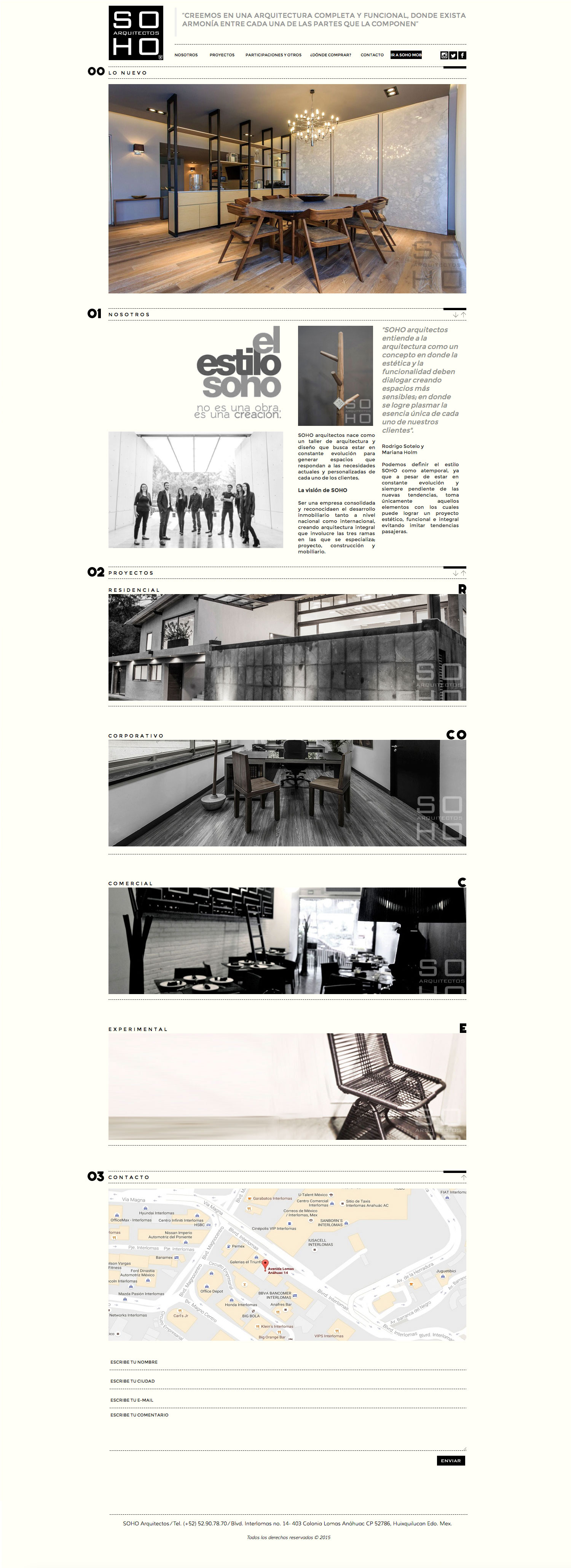 Diseño / Desarrollo Web Front Web Responsive SOHO Arquitectos Proyecto realizado en el año 2016 y se basó el en rediseño completo de la página y desarrollo web responsivo, en los años posteriores recibió mantenimiento y actualización de contenidos, principalmente el catálogo anual con los productos nuevos. Genaro Frías