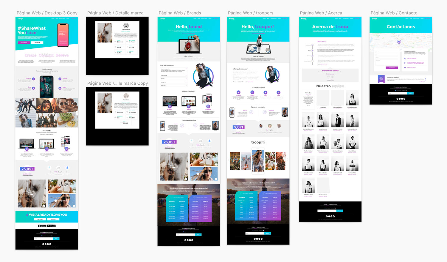 Trabajo realizado a partir de una investigación a susuarios de la aplicación y de las marcas participantes con el fin de cumplir las necesidades que pudieran requerir al consultar la página web. A partir de esas necesidades y objetivos, se realizo un trabajo conjunto entre equipo creativo, tenológico, producto owner, entre otros para definir con certeza la arquitectura de la información, validar los flujos y concluir con el diseño de la interfaz.
